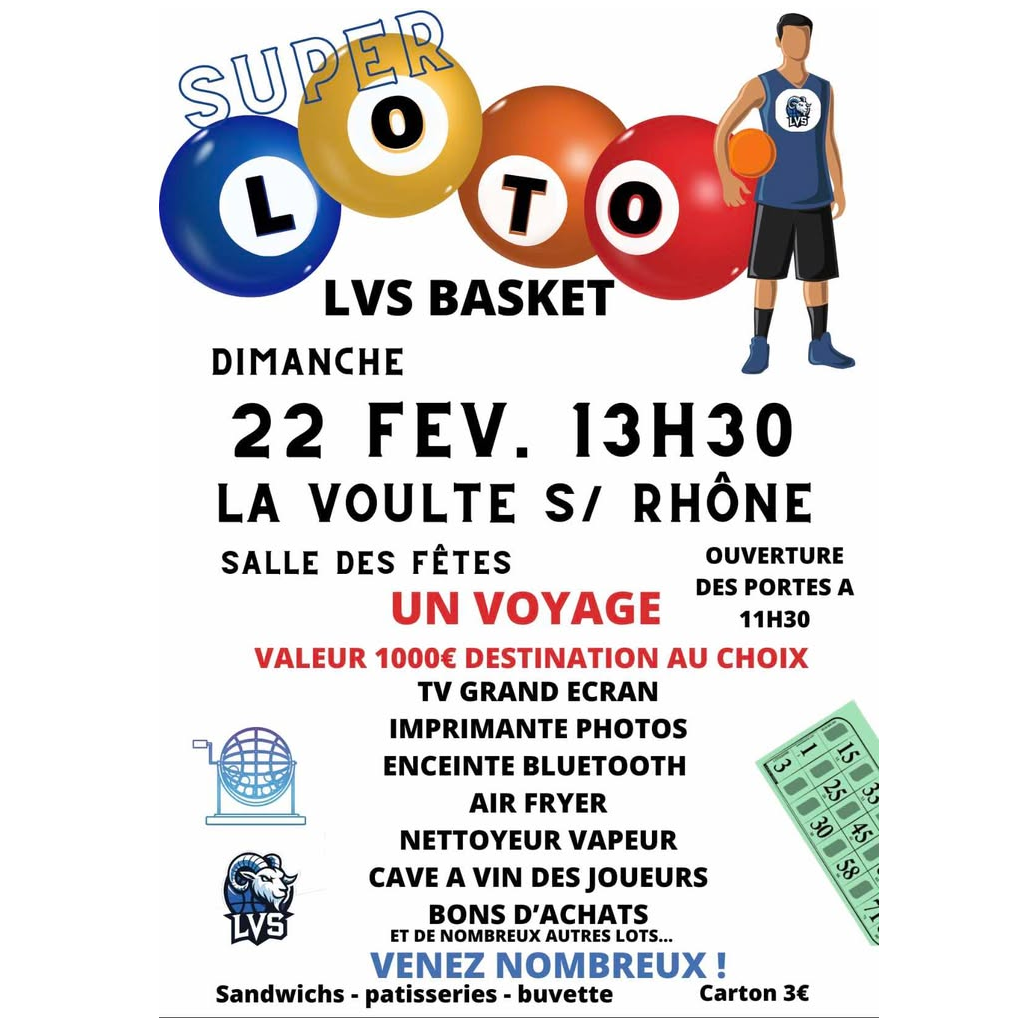 DIMANCHE 22 FÉVRIER – GRAND LOTO du LVS Basket